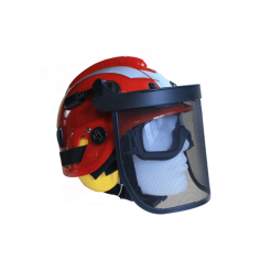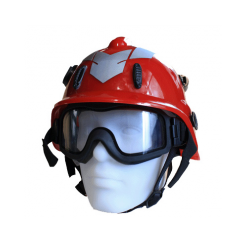 El casco esta fabricado en una sola pieza de PC, dispone de sistema de ventilación, anclaje de gafas, pinzas de anclaje de sistema de luz frontal, anclaje de linterna, sistema abatible de pantalla y de rejilla de desbroce. Así mismo pueden incorporarse protectores auditivos, protectores de nuca, sistemas de radio y video.