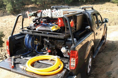 Gracias a la estructura porta herramientas aumentamos la operatividad de estos vehículos acompañando los kits motobomba de: herramientas manuales, antorchas de goteo ,motosierras , mochilas de agua, mochilas de combate … todo bien ordenado y situado en el cajón de equipamiento y la bandeja porta equipos.